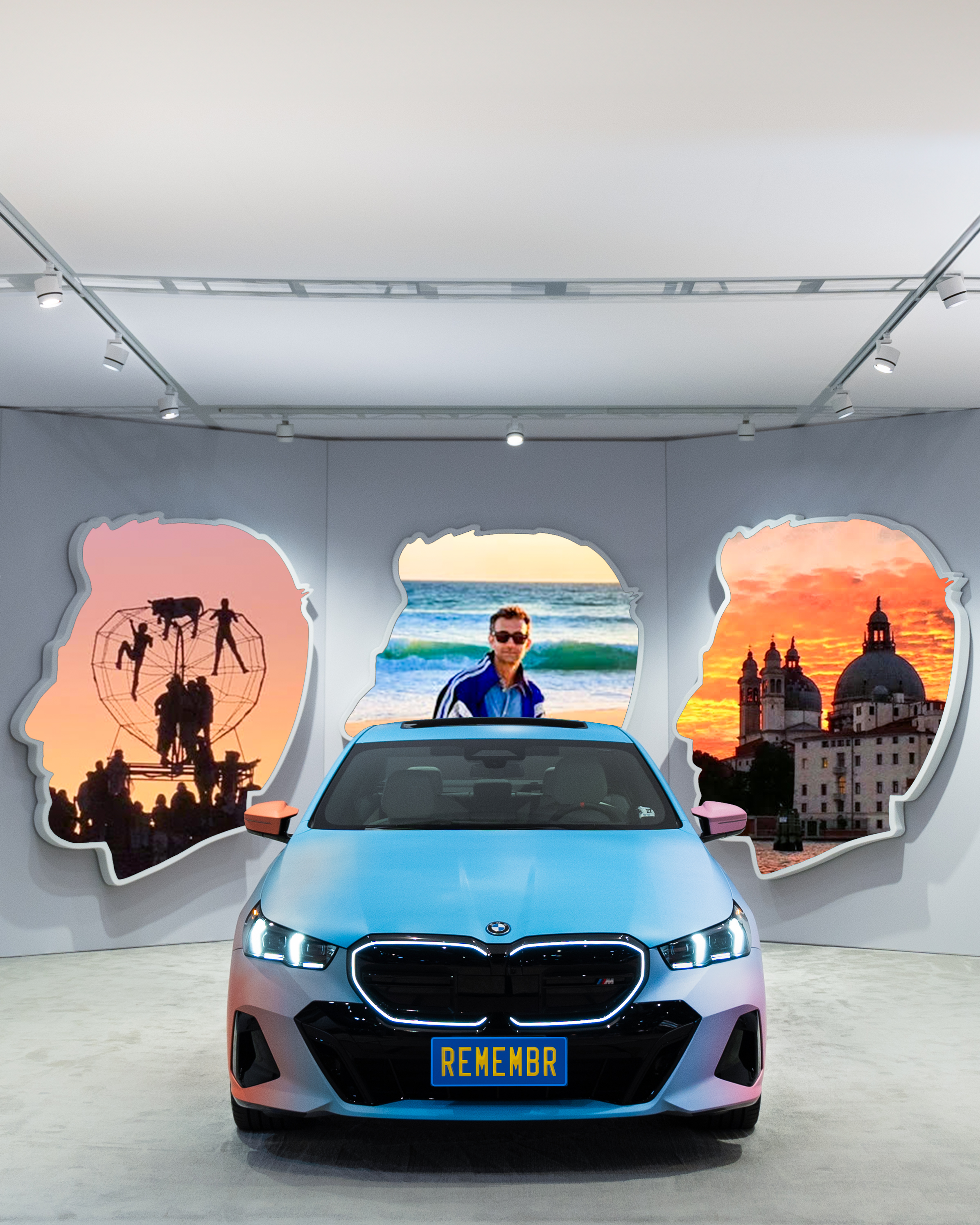 Artist Alex Israel and his AI video installation REMEMBR, inspired by the new 100% electric BMW i5, at Art Basel in Miami Beach 2023. Photo: Kevin Arrieta (12/2023)