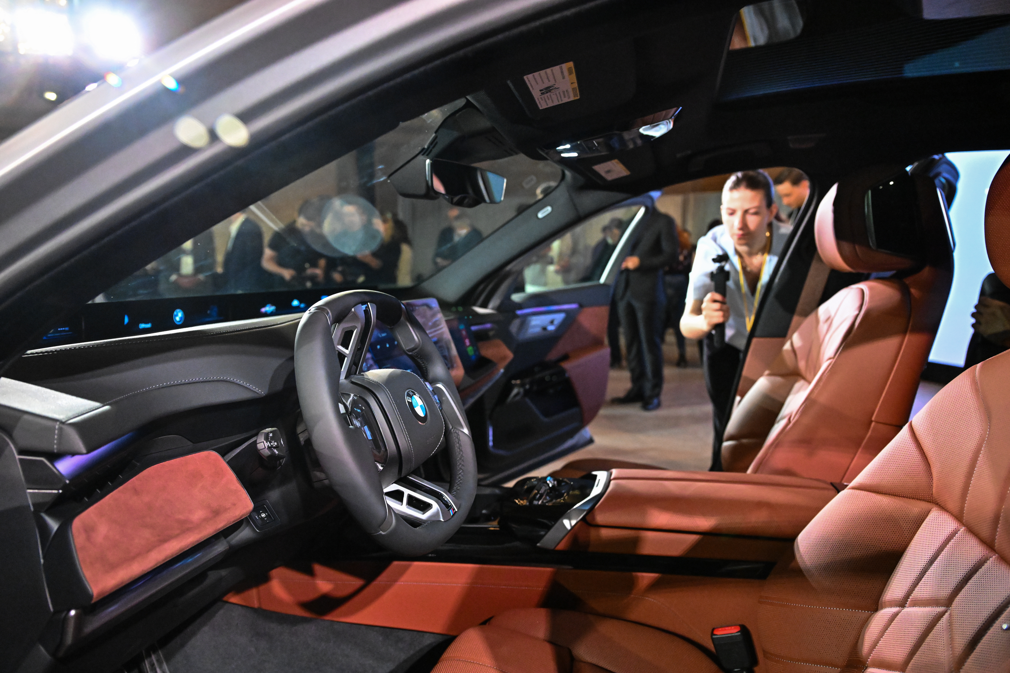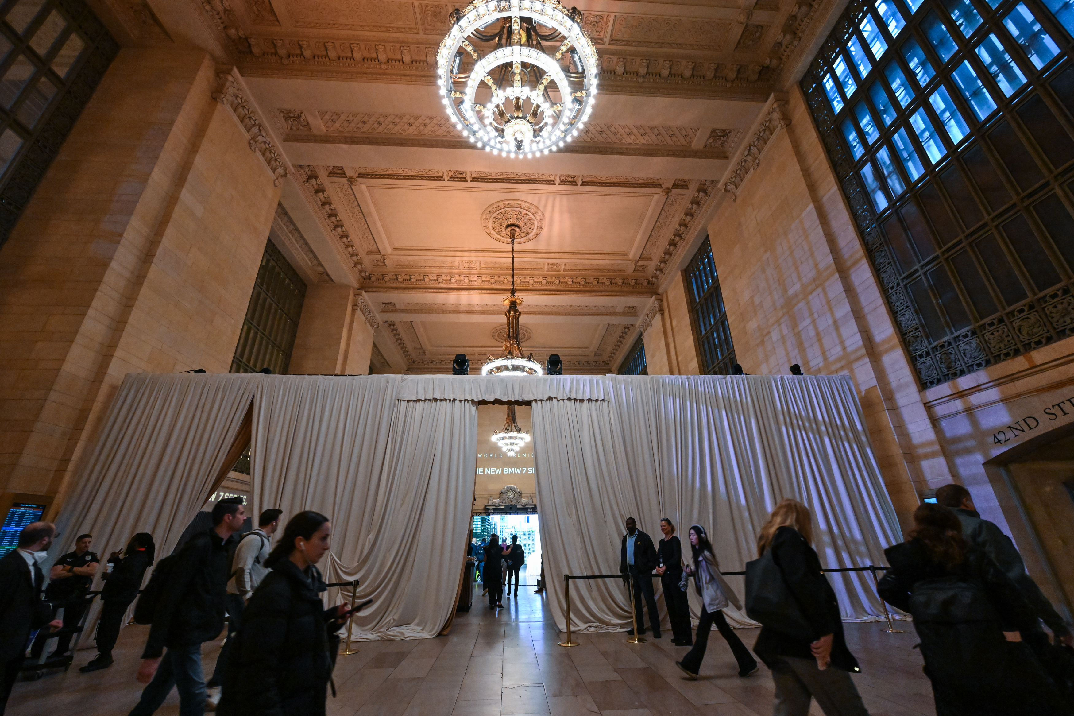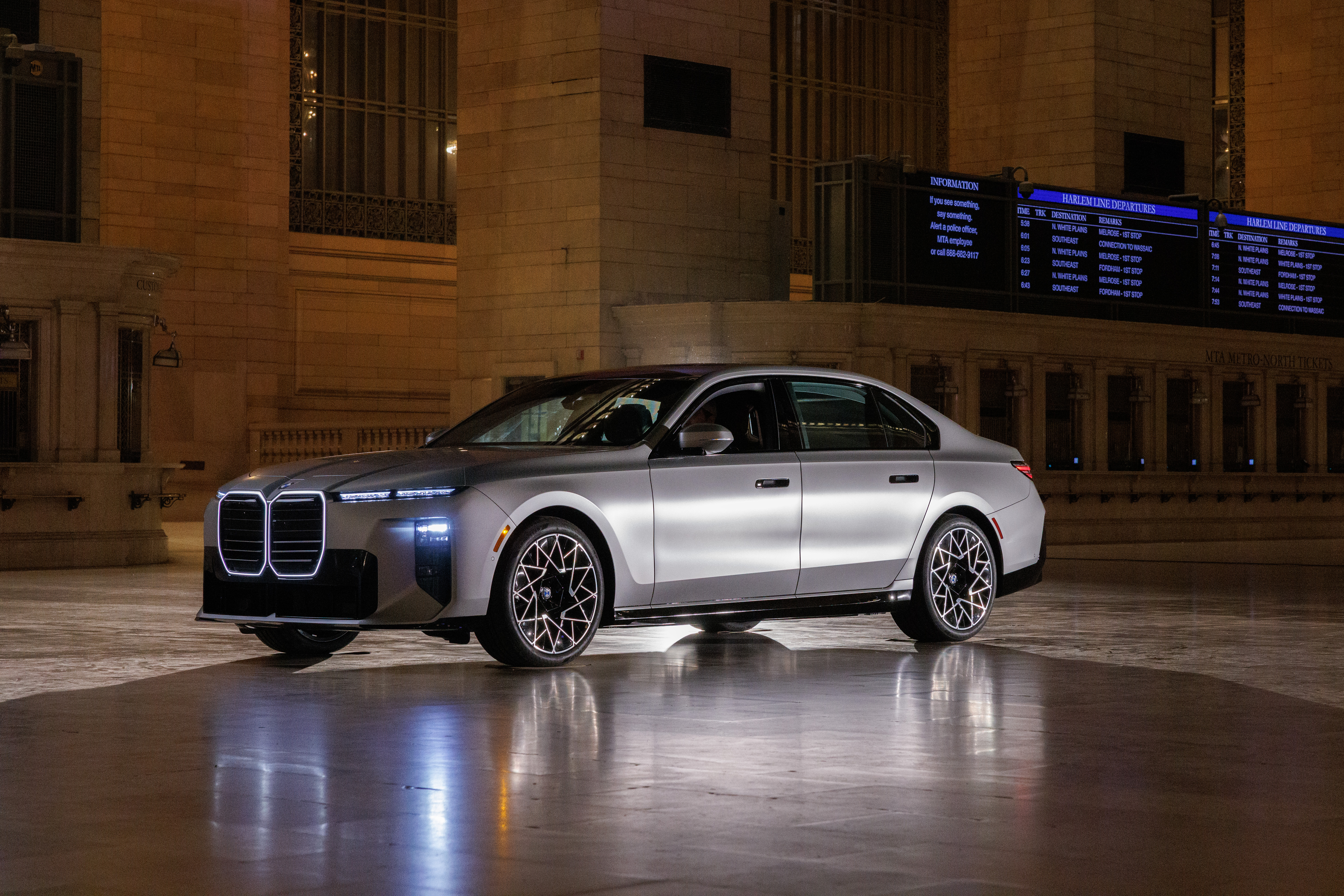 The new BMW 7 Series is unveiled on Wednesday, April 22, 2026, in Vanderbilt Hall at Grand Central Terminal, an iconic New York City landmark. (Diane ...