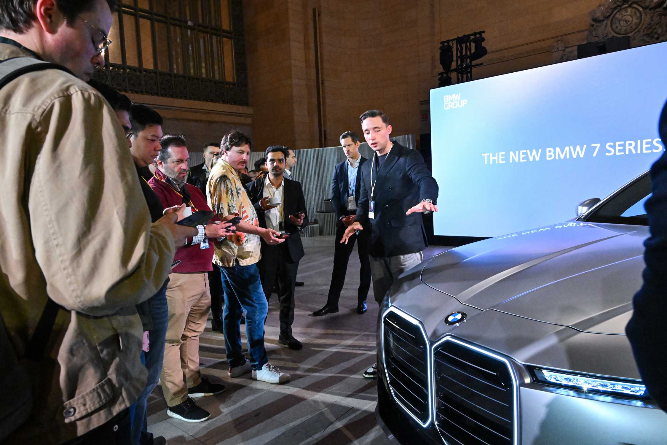 The new BMW 7 Series is unveiled on Wednesday, April 22, 2026, in Vanderbilt Hall at Grand Central Terminal, an iconic New York City landmark. (Diane ...