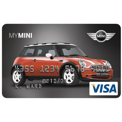 MINI Financial Services, a division of BMW Financial Services North America, now offers the MINI Card, a customizable VISA credit card that allows cardholders to design their own credit card image using a patent-pending, Web-based Configurator. Cardholders can select from four body styles, 36 wheel choices, 21 exterior body color choices, 24 exterior roof choices plus other features (06/2006)